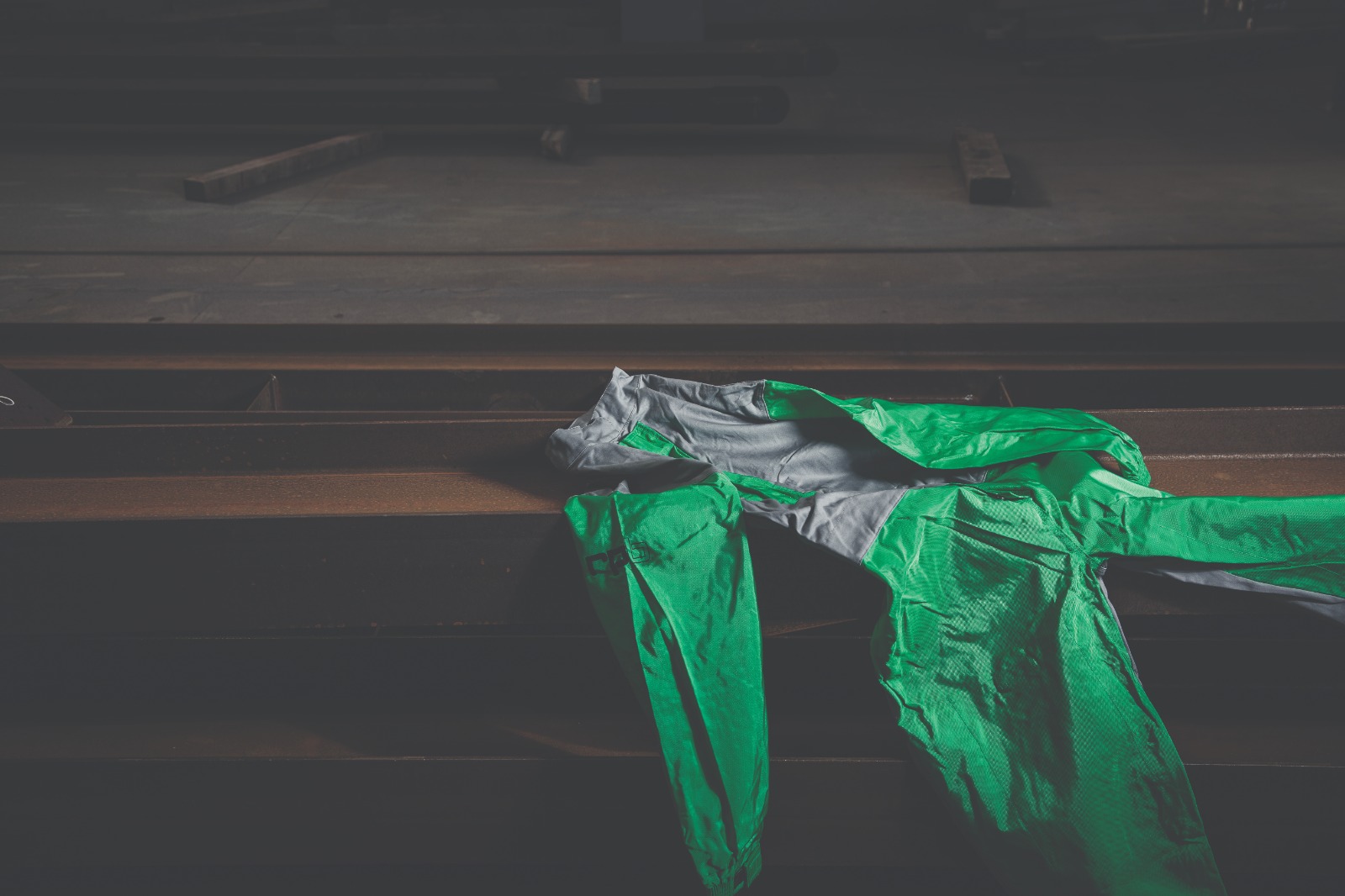 Leichter grüner Strahlanzug mit einer Kombination aus Nylon und Baumwollgewebe im hinteren und vorderen Brustbereich.